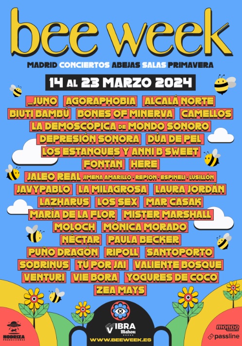 Esta semana arranca el Bee Week de Madrid, conciertos variados desde el 14 de marzo hasta el 23 de marzo en una segunda edición que tendrá lugar en 10 salas de Madrid, creciendo en número de conciertos con 31 citas musicales, algunas con cartel doble o cuádruple, con hasta 43 bandas.