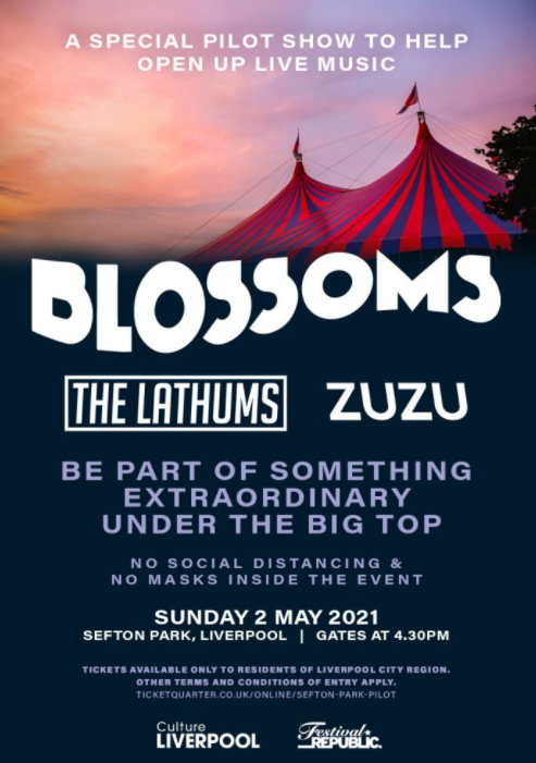 El concierto, denominado Sefton Park Pilot, es parte de una serie de eventos piloto organizados por el gobierno inglés en el período previo a que Inglaterra salga gradualmente del bloqueo a fines de junio.