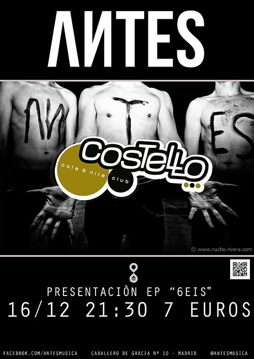 El grupo de rock alternativo ANTES estará presentando el próximo 16 de diciembre en la sala Costello de Madrid su disco debut, un EP de 6 temas titulado «6eis» junto con versiones de artistas como Depeche Mode, Katy Perry o The Cardigans.