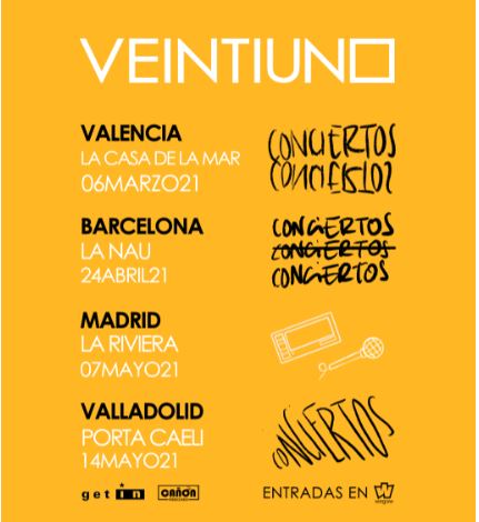 El grupo VEINTIUNO anunciaba hace unos días su concierto en la sala La Riviera de Madrid a lo que añade ahora nuevas ciudades: