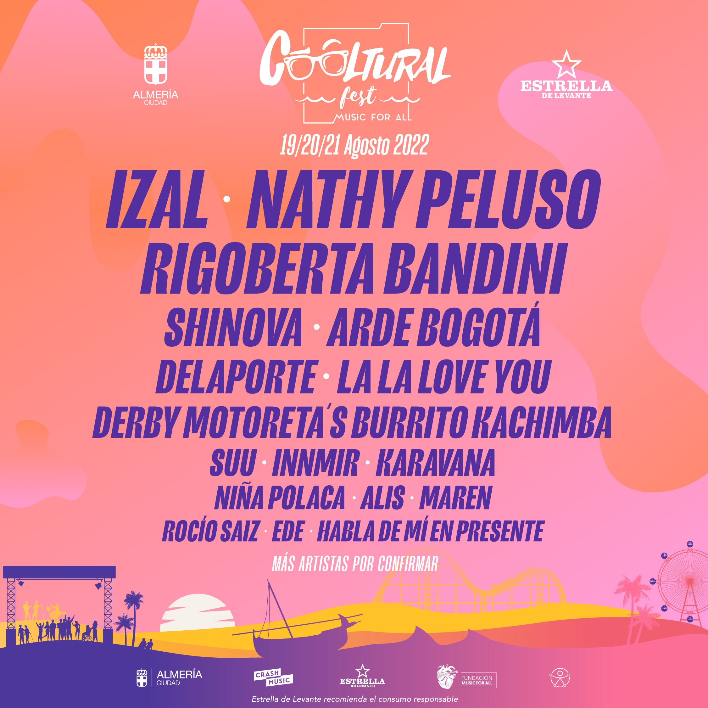 El Cooltural Fest volverá del 19 al 21 de agosto a Almería, habiéndose desvelado parte del cartel, ahora se anuncian nuevas incorporaciones con Shinova, el rock andaluz y psicodélico de Derby Motoreta’s Burrito Kachimba (DMBK), Delaporte, la furia más apunkada de Niña Polaca, Rocío Saiz, los emergentes Habla De Mí En Presente, el ciclón Nathy Peluso, Izal, dentro de su gira de despedida, o Rigoberta Bandini.