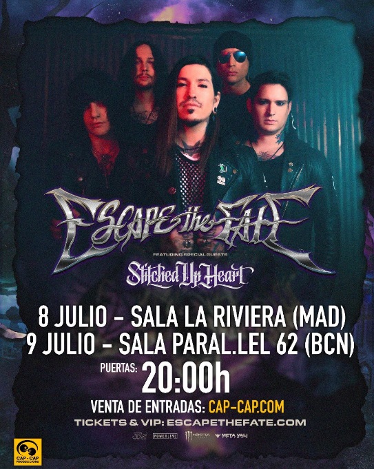 La banda de post-hardcore norteamericana, Escape the Fate, ha anunciado concierto en España, concretamente en Madrid y Barcelona, donde presentarán su nuevo disco «Out Of The Shadows 2.0»