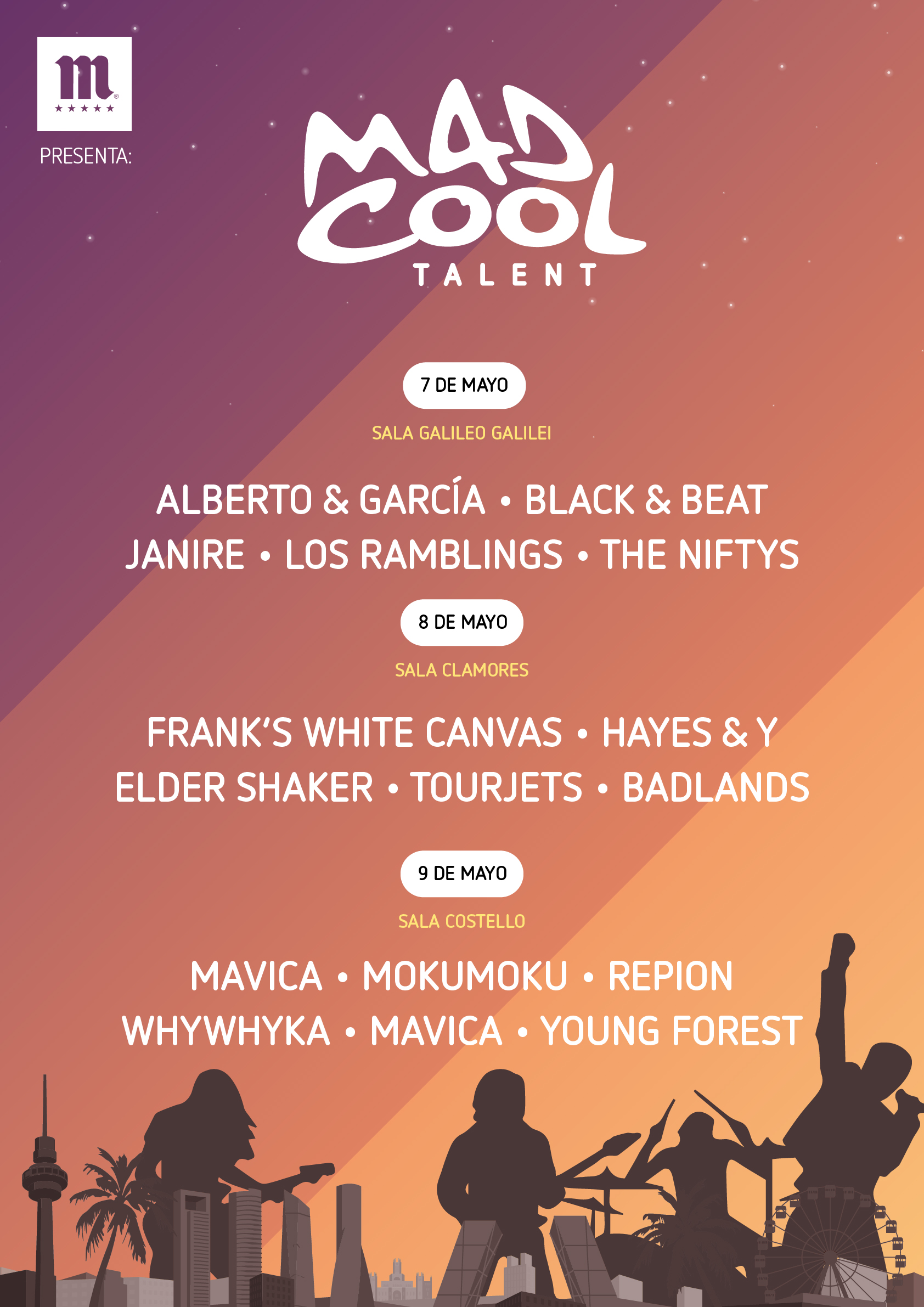 El jurado puntuará a cada una de las 15 bandas que actúen y el 10 de mayo se anunciarán en las redes sociales y página web los nueve grupos ganadores que pasarán a incorporarse al cartel de Mad Cool Festival 2018 que se celebrará los días 12, 13 y 14 de julio de 2018.