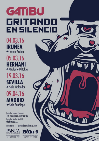 El grupo GATIBU y GRITANDO EN SILENCIO unen fuerzas en una pequeña gira que les llevará a cuatro ciudades en el mes de marzo: Iruña, Hernani, Sevilla y Madrid los días 4, 5, 19 de marzo y el 9 de abril, respectivamente. Os dejamos detalles.