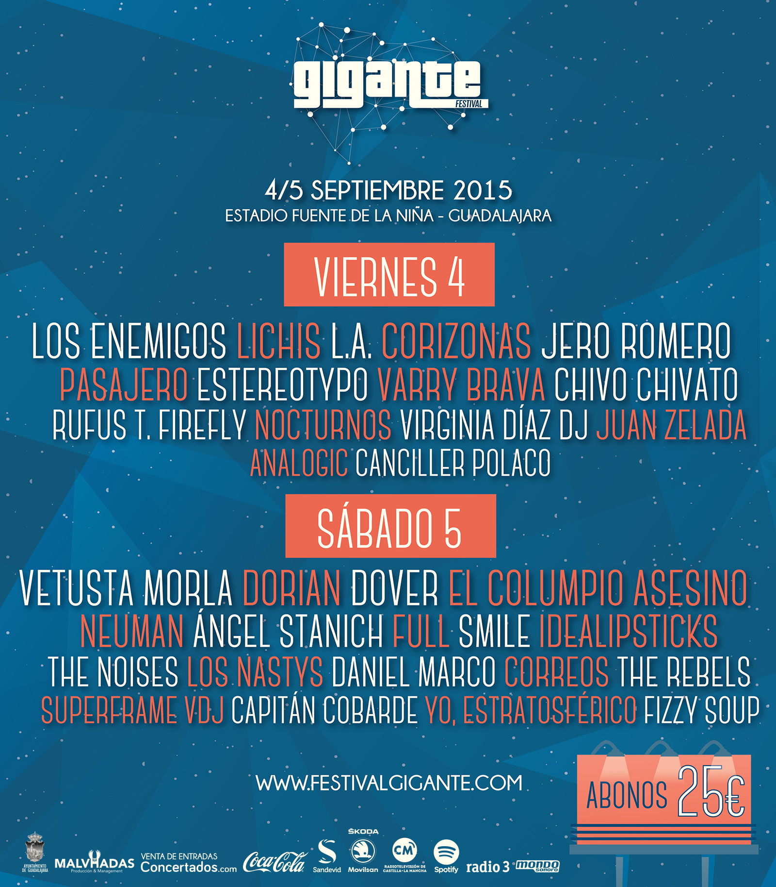 Ya se conocen los horarios de conciertos del FESTIVAL GIGANTE que se celebra los días 5 y 6 de septiembre en Estadio Fuente de la Niña de Guadalajara.