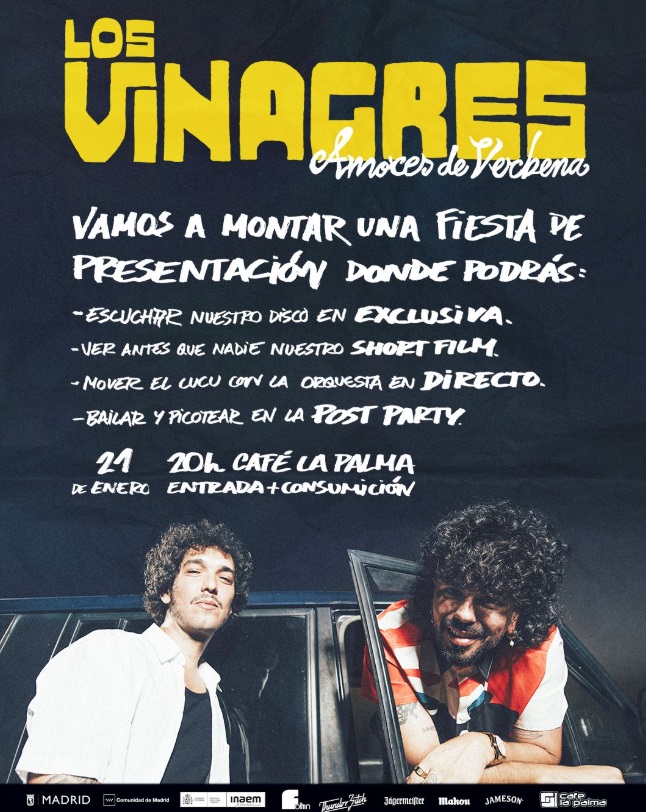 La banda canaria Los Vinagres regresa con un nuevo disco «Amores de Verbena» y lo celebrará el miércoles 21 de enero de 2026 en Madrid. Será por todo lo alto en el Café La Palma con un evento especial pensado para celebrar sus nuevas canciones.
