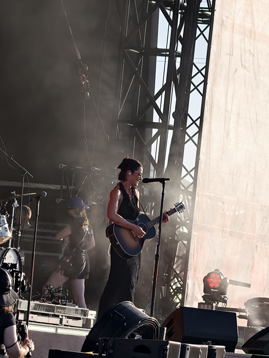 Gracie Abrams viviría la mala suerte, junto a la de sus seguidores, seguramente 90% chicas, de tener un corte de sonido poco más de veinte minutos después de arrancar su actuación, no sin antes haber podido tocar una de sus joyas musicales «I love you, I’m sorry». Coros, gritos y muchísimas jóvenes con el estilo de la norteamericana que gastó en Glastombury, porque la artista ya marca tendencia como imagen de Chanel, muchos pañuelos en las cabezas y sueños cumplidos con «Risk» o «21» sonando en un escenario en el que el sol nos ajusticiaba y en el que la artista pasa de tocar la guitarra al piano mientras regala sonrisas.