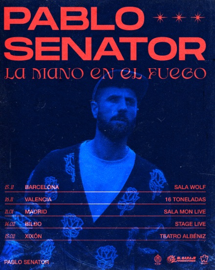 Pablo Senator, el proyecto en solitario de Pablo Martínez, quien fuese líder de los extintos DESAKATO anuncia primeros conciertos de presentación del que será su primer álbum «La Mano En El Fuego» y del que ha ido adelantando los singles «Motorizados», «Las Águilas», «Subir a Primera» o «Stalingrado».