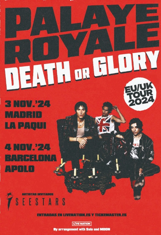 La banda norteamericana de rock Palaye Royale, ha anunciado dos conciertos dentro de su «Death or Glory Tour» en Madrid, el 3 de noviembre (Sala La Paqui) y en Barcelona, el 4 de noviembre (Apolo).