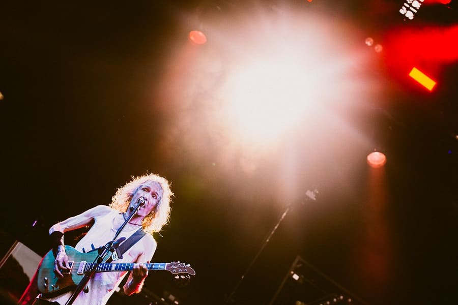 Un comienzo con bronca para el Ayuntamiento, teniendo que arrancar poco más tarde de las 21 horas con toda la luz del atardecer, restando luz, nunca mejor dicho a su directo: «“Buenas tardes, o buenas noches. No sé qué cojones es. Menuda normativa municipal de mierda», ante los aplausos de la gente, para un tipo que dice «no ser dueño de sus emociones» en un arranque de directo con «Del tiempo perdido» de su segundo álbum en solitario, y donde como en gran parte del concierto, su guitarra quedó bastante tapada, restando ese músculo y mala leche que por ejemplo, Uoho sí aportaba al directo de ‘Extremo’.