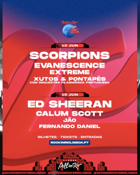El Rock in Rio Lisboa 2024 anuncia mucho rock en el fin de semana del 15 de junio tras anunciar a Scorpions, Evanescence, que llegan celebrando el 20 aniversario de su exitoso debut «FALLEN«, Extreme (con nuevo disco ‘Six’) y Xutos & Pontapés con la Orquesta Filarmónica Portuguesa, con un concierto especialmente creado para celebrar los 20 años de Rock in Rio, en el Escenario Mundo, en lo que será una edición muy especial.