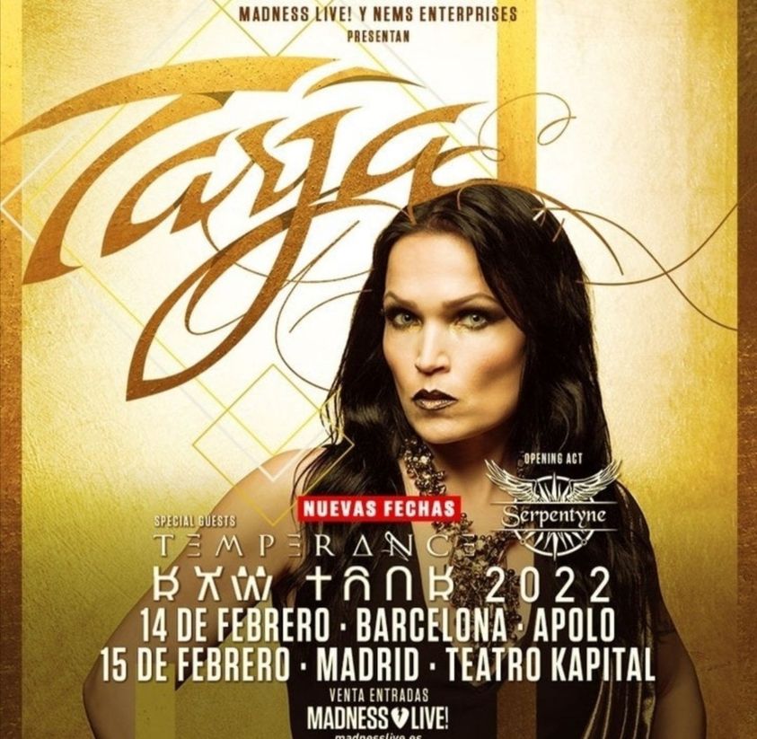 Tarja, la que fuera conocida voz de Nightwish, estará actuando en España en 2022. A la primera fecha inicial de Barcelona del 14 de febrero, se suma el 15 de febrero en Madrid. La artista contará conTemperance y Serpentyne.